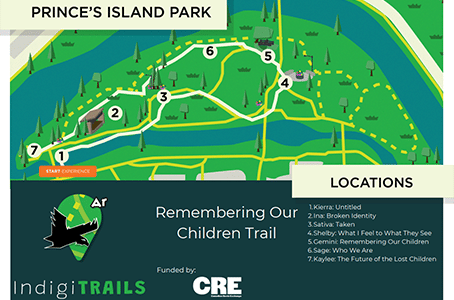 GPS Augmented Reality app. Remembering Our Children is an art exhibit at Prince’s Island Park in Calgary, Alberta, commemorating survivors of Indian Residential Schools and honouring the children who were recovered.